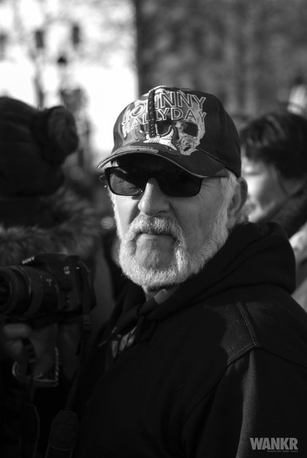 Grosse flemme matinale en ce samedi 9 décembre! j’avais pourtant pris la veille la décision de participer aux hommages de Johnny. un hommage également à la génération de yéyé de mes parents! Me voilà parti avec mon reflex d’amateur doté d’une carte mémoire pleine à craquer. J’ai dû trouver en urgence un office dépôt ouvert le samedi à 12h… Ouf! Me voilà juste à l’heure pour l’arrivée du convoi de la star frenchy! On le sait il est là! Les gyrophares illuminent l’horizon accompagné d’un vrombissement impressionnant ! Les bikers et la star sont bien là. La foule est immense et calme ! Pas de folie, pas d’hystérie, les gens sont venus simplement, calmement. Les bikers paradent sous les applaudissements de la foule en direction de la concorde! La place trouve son calme et les vrombissement des moteurs cessent ! la place est calme… La cérémonie commence. Salut l’artiste.